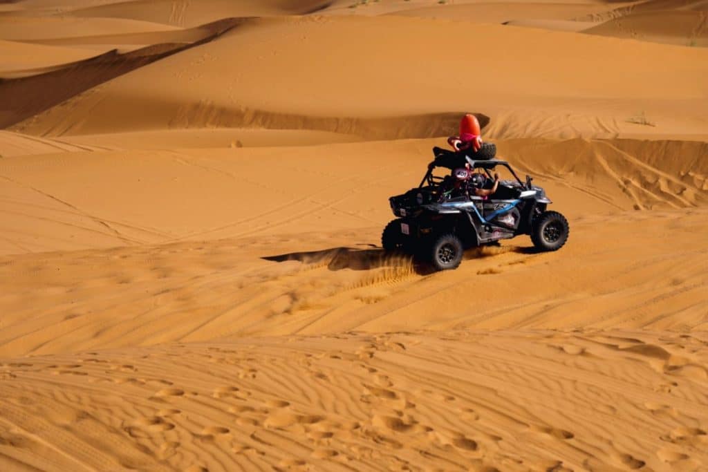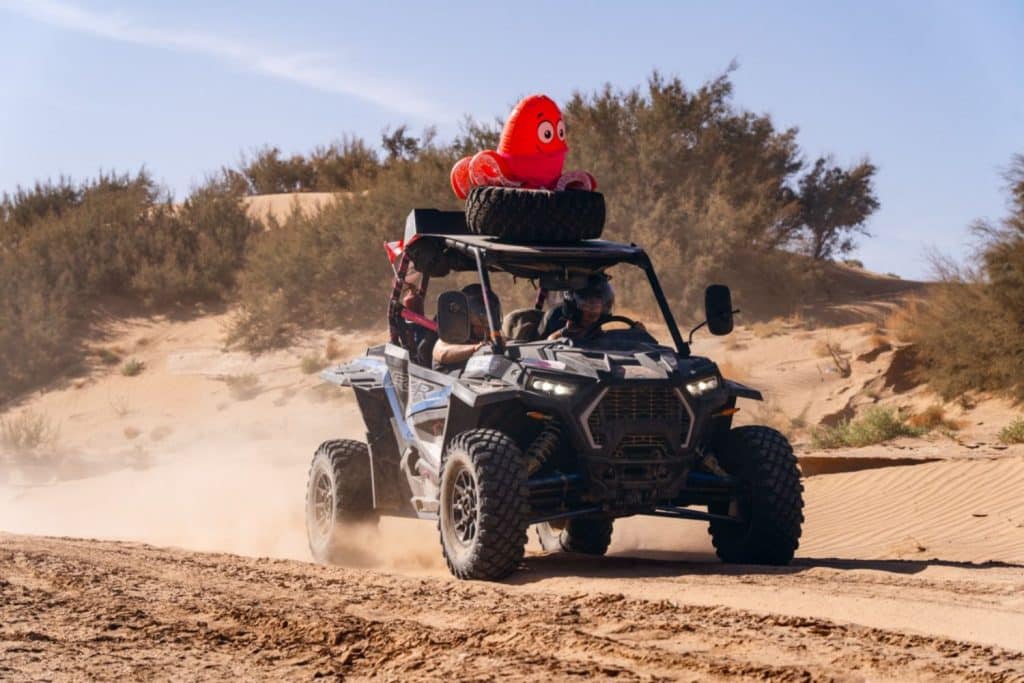 Our favorite stage was undoubtedly the huge dunes of Merzouga. It felt like we were on a treasure hunt in the Mario Kart video game as we sent the Moroccan sand flying by drifting along the crest of the dunes to reach the 60 caps to be validated by our Tripy. It was magical, unforgettable, and definitely worth repeating.